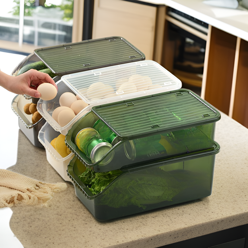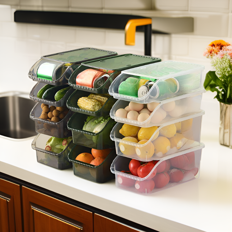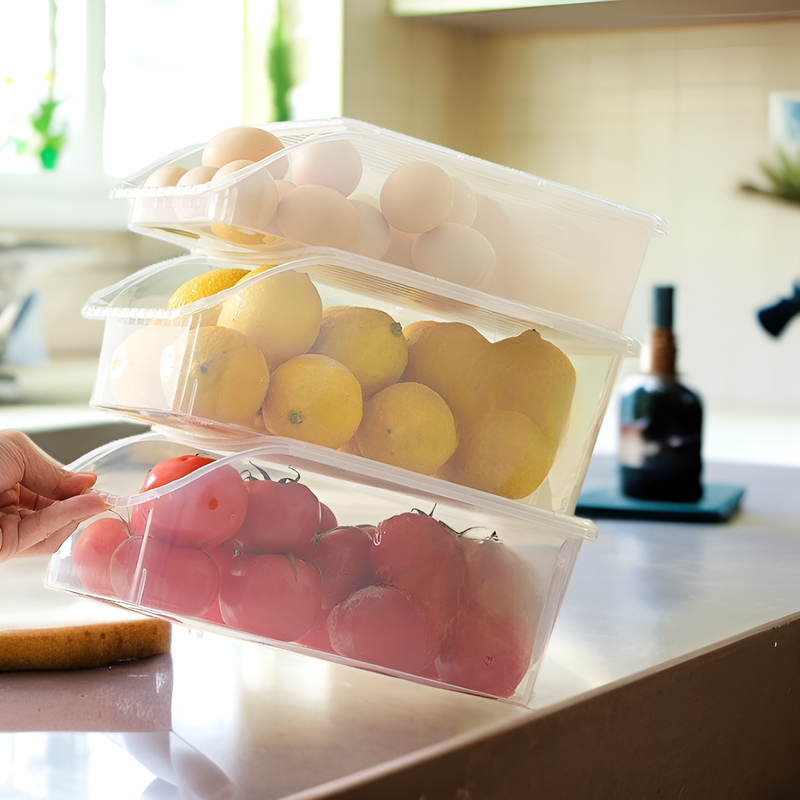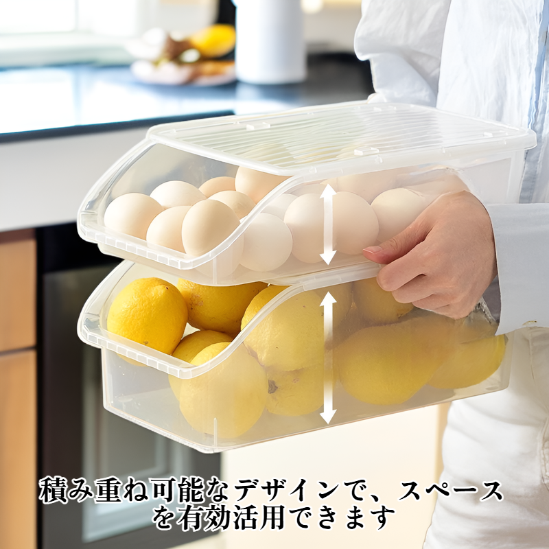 ● スタッキング可能なデザインで、スペースを有効活用しながら、複数の食材をすっきり収納できます。